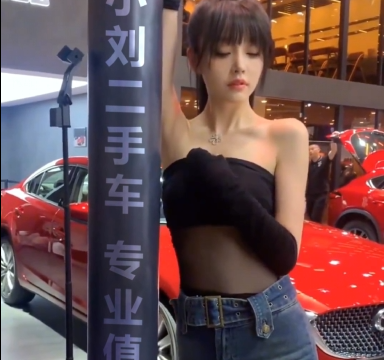 车展美女靠电杆